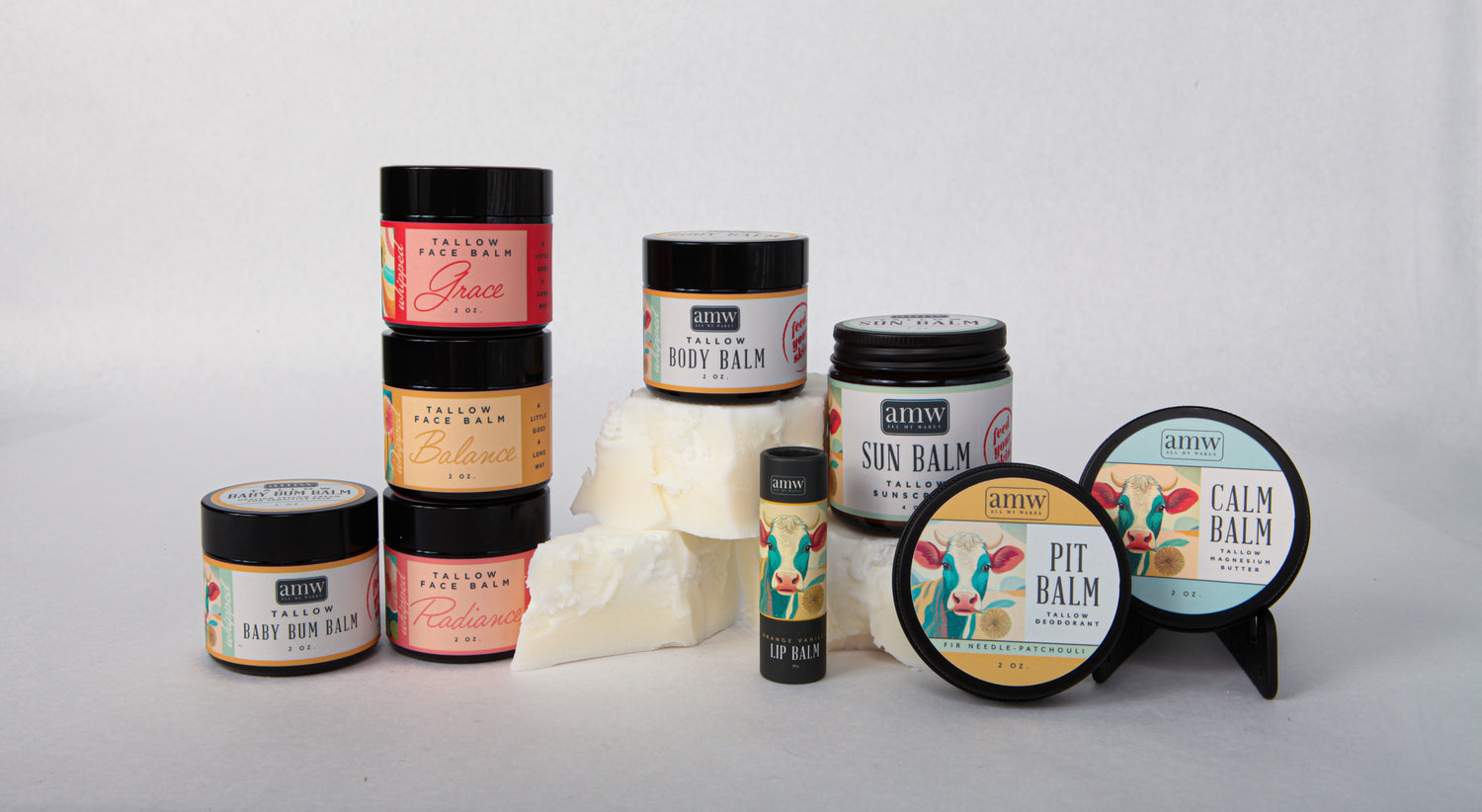 "I started purchasing from AMW about a year ago and my family and I are hooked! Their baby bum balm was just what my little one needed to soothe some diaper irritation. She is now 3 and still asks for it. My teenager started using the tallow on her face to help with acne and said she noticed a difference in how her skin looked and felt after only a few days. I absolutely love that these products are totally natural."